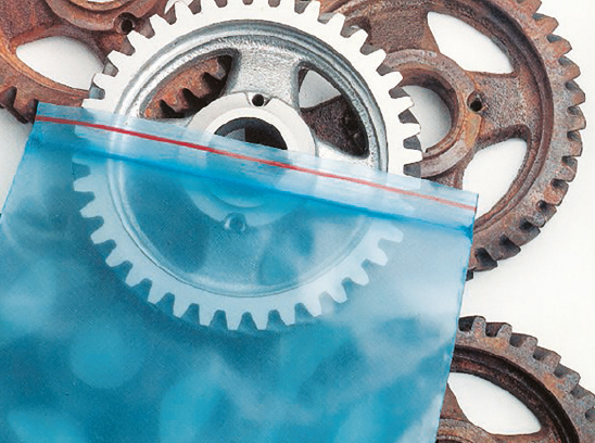 Products to be protected are placed in a VCI packaging (VpCI), such as a bag. When the bag is sealed, an active process starts that gives you comprehensive corrosion protection down to the smallest porosity. If you use your corrosion protection correctly, you maintain maximum, cost-effective protection against rust and corrosion.